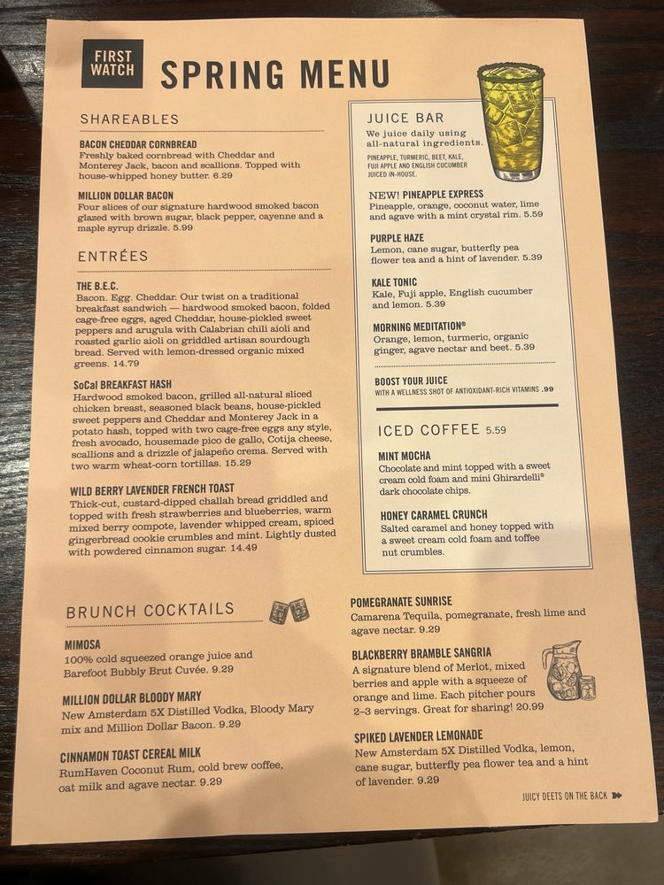 Welcome to First Watch MD, an American breakfast and brunch gem located in Laurel, MD. Known for its vibrant atmosphere, this café specializes in hearty meals that delight all palates. With an extensive menu featuring options like the Million Dollar Bacon and Acai Bowl, there's something for everyone—vegan, vegetarian, or meat lover.